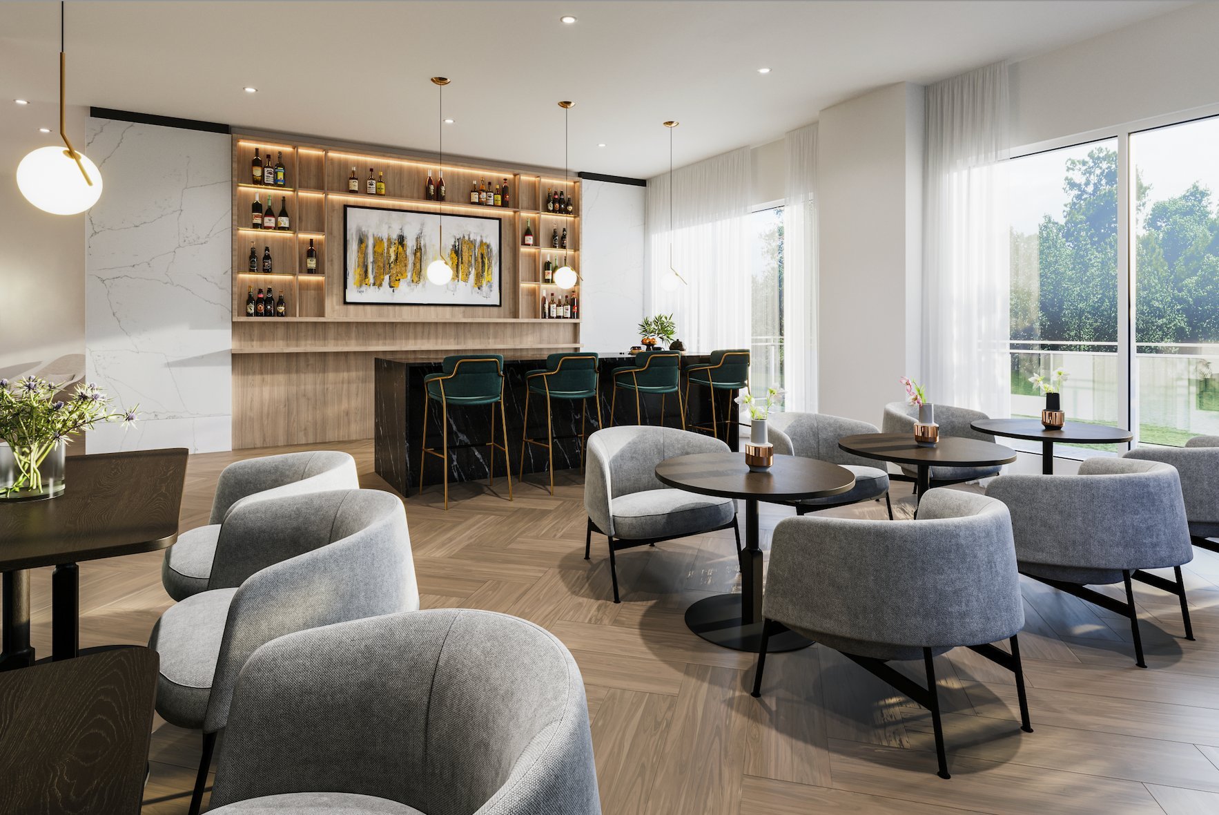 Unité 1203 - 2 chambres | 2 salles de bain | 1 038 pieds carrés Appartement lumineux de 2 chambres à coucher dans la phase VII de Marquise de Laval, avec des équipements haut de gamme, y compris une piscine chauffée, une salle de sport et des espaces de coworking.